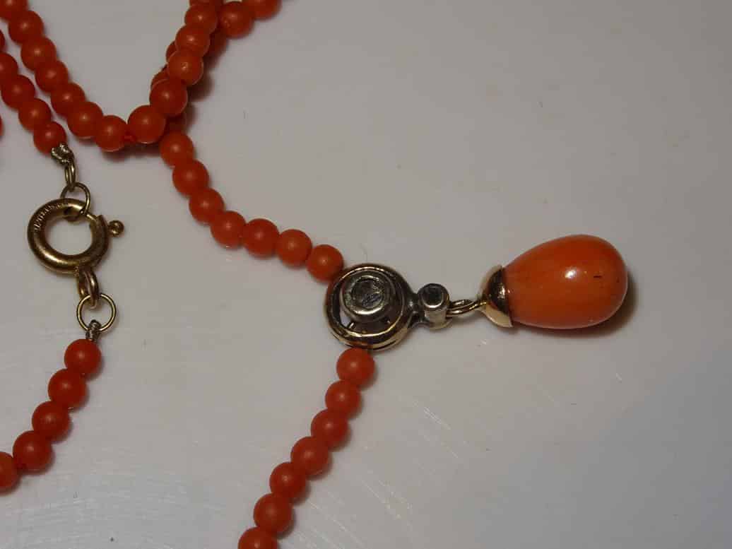 ZobaczNaszyjnik korale szlachetne, złoto i rozety diamentowe STARY