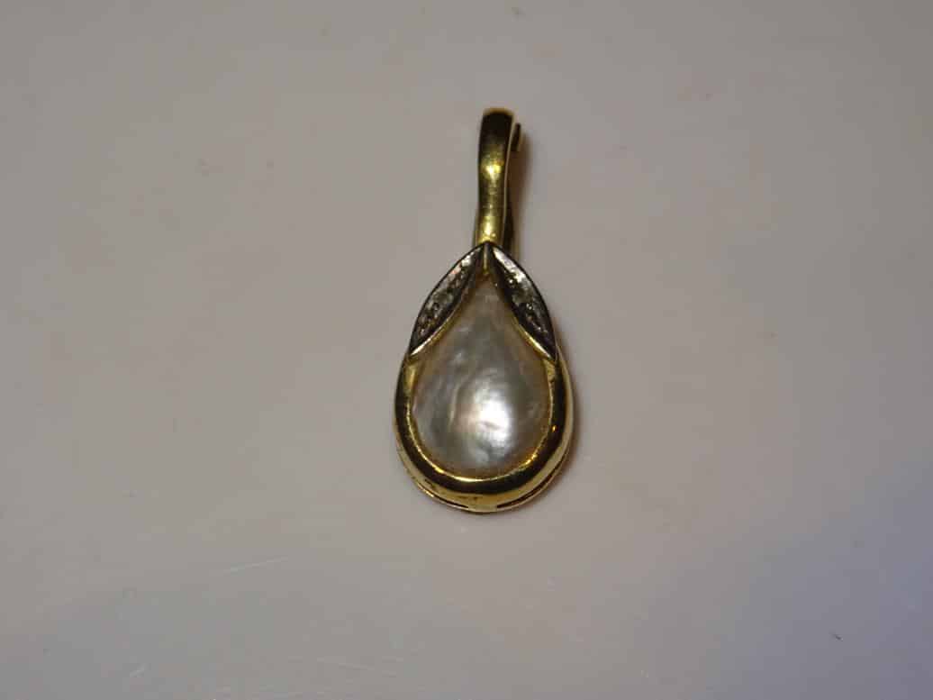 ZobaczZłota zawieszka-zapinka z diamentami i perłą
