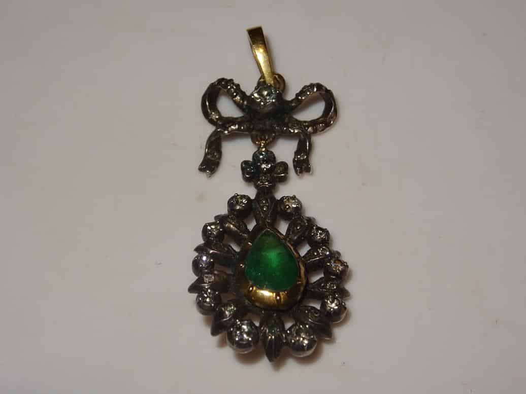 ZobaczZłota zawieszka z diamentami i szmaragdem SECESJA
